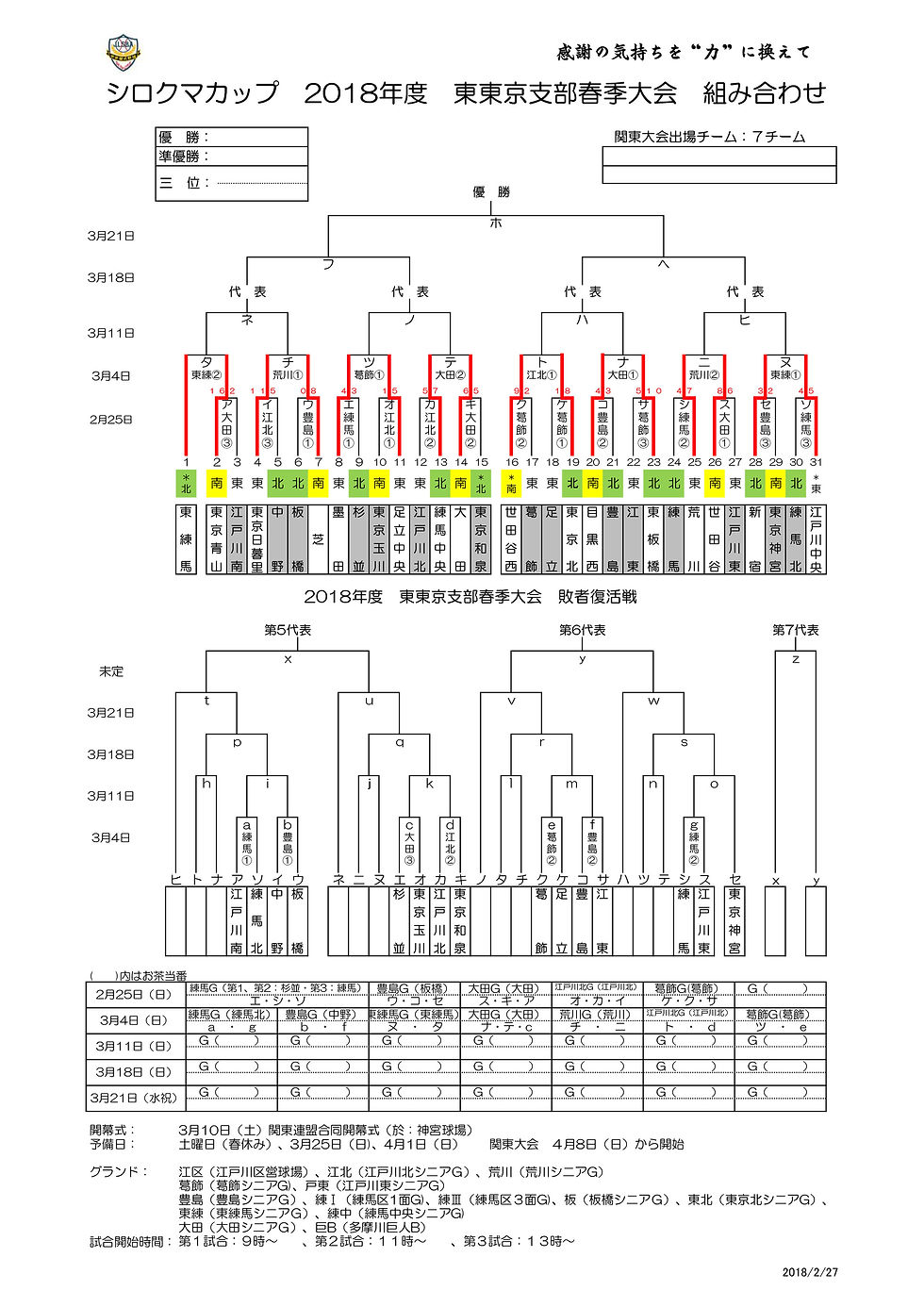 春季大会組合せWeb Master2018年2月17日読了時間: 1分いよいよ、2018年度・東東京支部・春季大会が始まります。第1回戦は2月25日、東京玉川シニアさんとの対戦です。江戸川北シニアグラウンドで第1試合の9時スタート予定です。みなさま応援よろしくお願い致します。 下の画像をクリックすると、PDFファイルでご覧になれます。2018/2/27現在